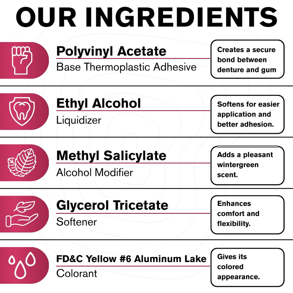 Unmatched Strength – Extra Strong Hold Up to 4 Days - Thermoplastic denture adhesive delivers unmatched strength and stability so dentures stay secure, giving you everyday confidence without daily reapplication.