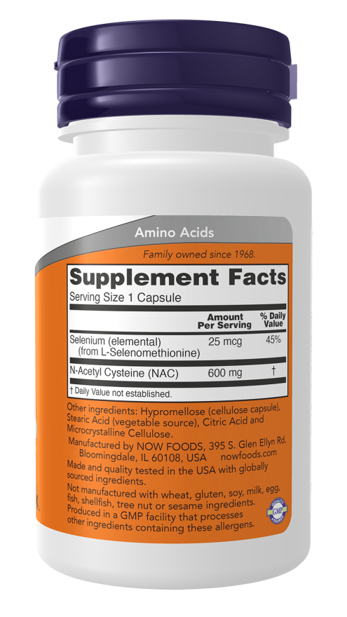 N-acetyl cysteine (NAC) is a stable form of the non-essential amino acid cysteine. It is a sulfur-containing amino acid that acts as a stabilizer for the formation of protein structures, and is also necessary for the formation of glutathione. Selenium is an essential trace mineral that facilitates the production of several important enzymes.